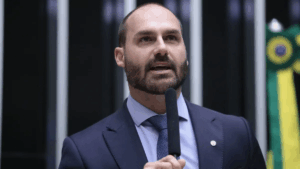 Eduardo Bolsonaro reside nos Estados Unidos desde fevereiro e afirma que não pode voltar ao país por ser alvo de “perseguição política”. O parlamentar chegou a se licenciar, mas o período venceu e ele não pode solicitar um novo afastamento formal.